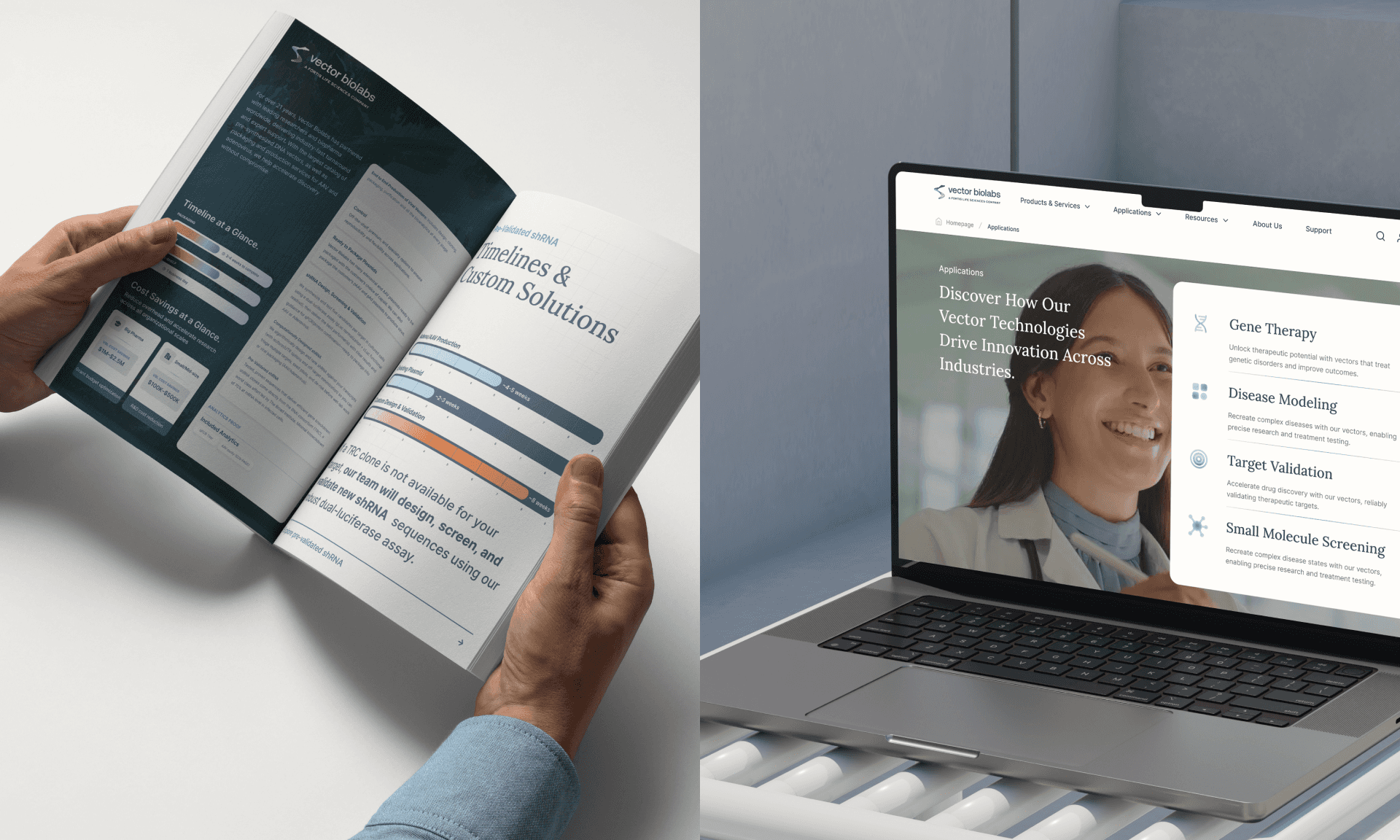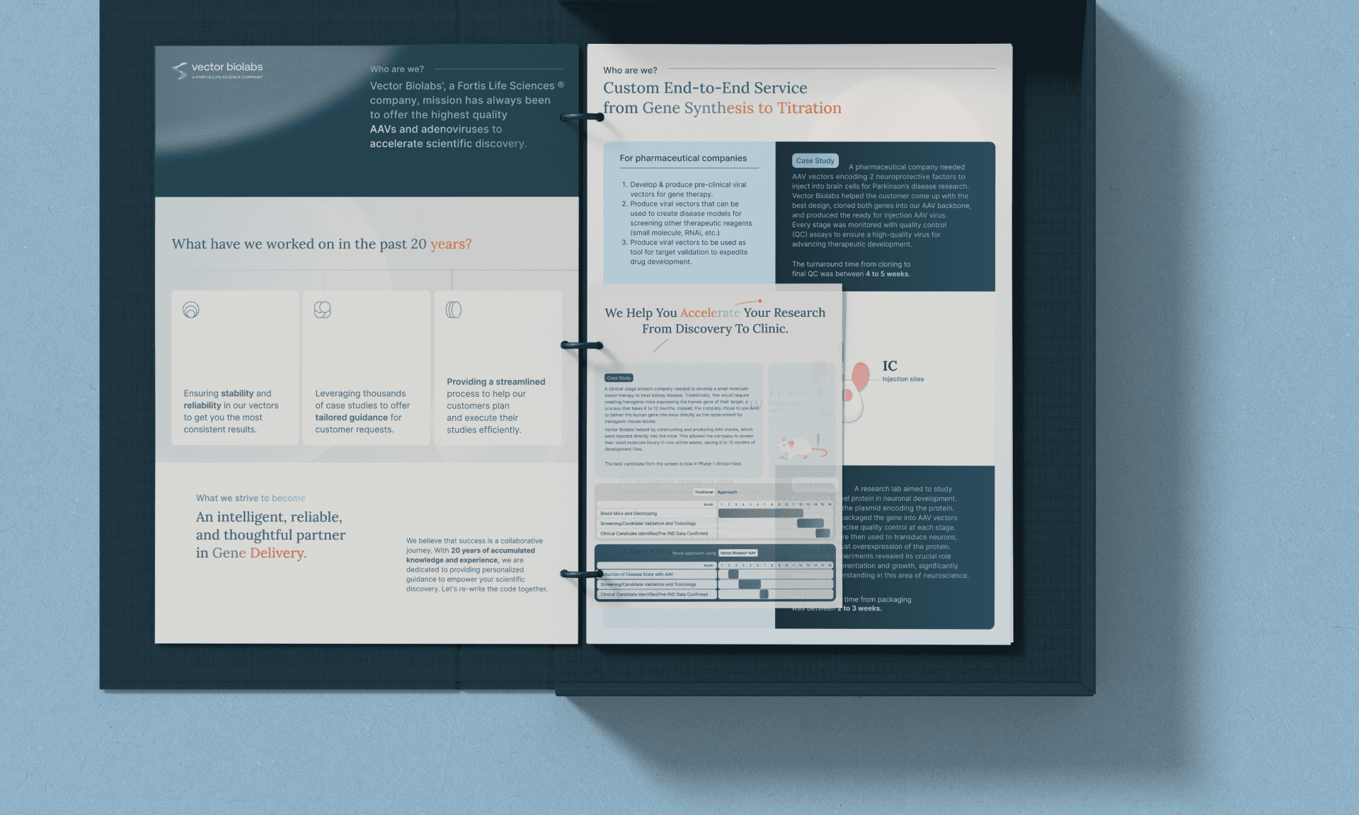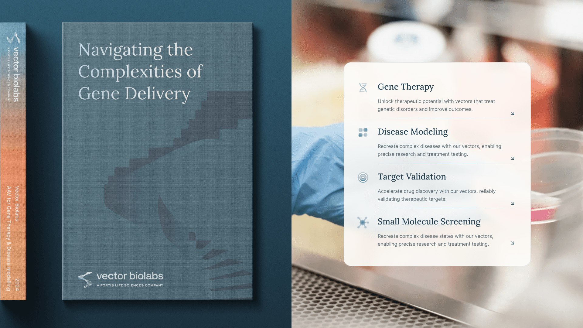 Vector Biolabs is a 20-year-old biotech company specializing in gene delivery tools for research and therapy. Despite its deep scientific credibility, its previous brand identity lacked emotional depth, clarity, and consistency, limiting its ability to stand out in a competitive landscape.
